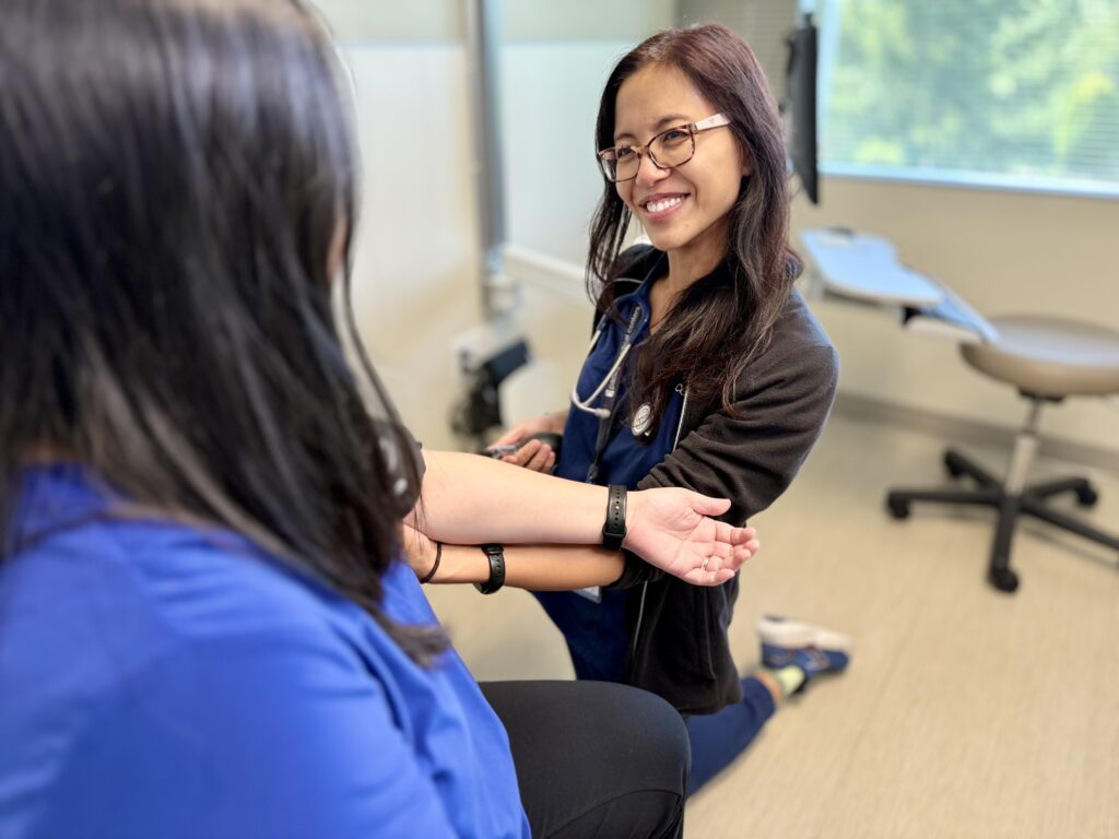 Kris says she and her team collaborate closely day to day, making sure patients get the best care possible. “We’re pretty open about communication. When we all sit in our pod together, we can talk directly about patient care,” Kris says. “If the MAs are short-staffed, I’ll jump in and help room patients. Anywhere I see a gap I can fill within my scope, I’ll hop in.” This spirit of pitching in, she says, makes the clinic feel like “a level up” compared to other places she’s worked, with experienced colleagues who are always willing to share their knowledge.