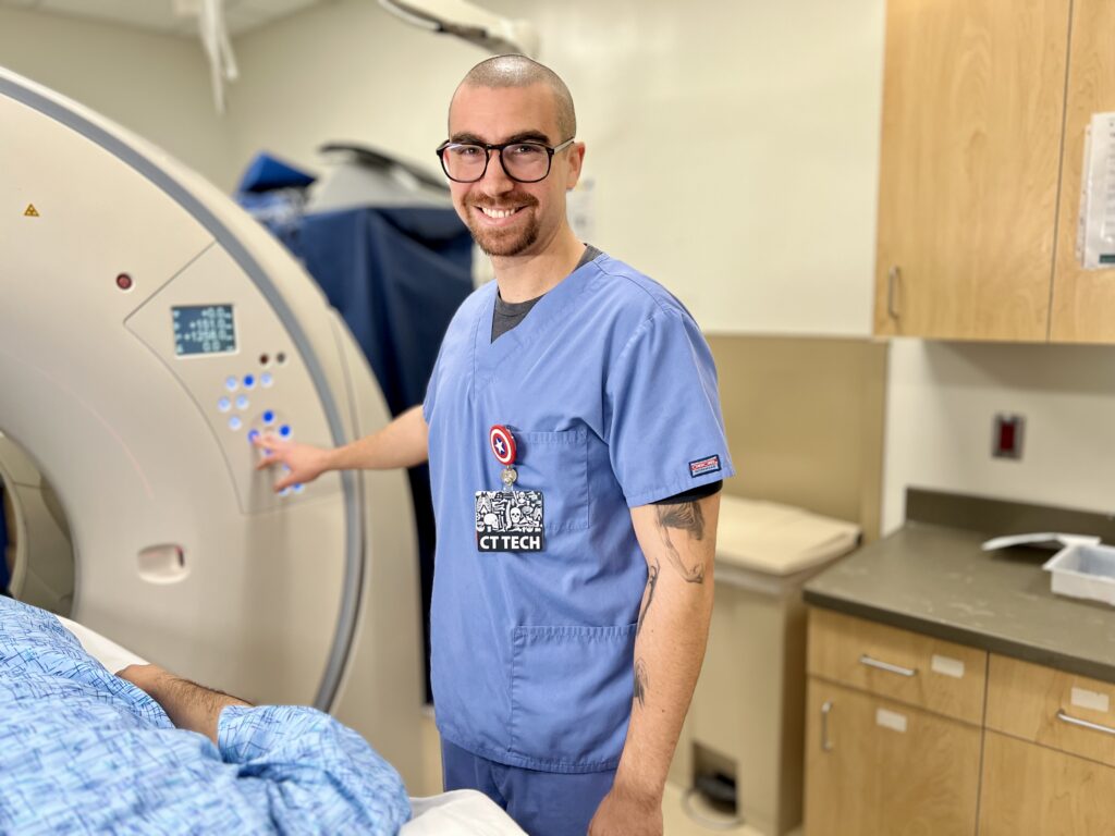 CT and X-ray Tech Ben says that though the job can be demanding, his coworkers make it fun. “People make eye contact and smile in the halls,” he says. “They say, ‘Hey, if you need help with this, or if you want to carpool, we can do that.’ The generosity is pretty top shelf.”
